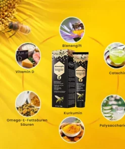 - Der Hauptbestandteil des Bienengifts ist Melittin, ein biologisch aktives Protein, das von den Nadeldrüsen der Bienen abgesondert wird. Es hat eine starke entzündungshemmende und schmerzstillende Wirkung, die Schmerzen und Schwellungen bei Arthritis wirksam lindern kann.