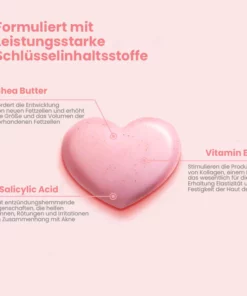 - Inhaltsstoffe: Salicylsäure, Sheabutter, Vitamin E, Africana-Fruchtextrakt, Pueraria Lobata-Wurzelextrakt