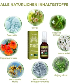 Oveallgo™ Natürliches Kräuterspray zur Unterstützung der Lunge und der Atemwege – eine wirksame Lösung für Atembeschwerden, die durch Allergien, Asthma, Rauchen, COPD, Lungenentzündung, Bronchitis oder ein geschwächtes Atmungssystem verursacht werden. Unsere Formel reinigt Ihre Lunge, löst Schleim und stärkt die Atmung in 8 Wochen und lindert so Atemwegserkrankungen, einschließlich Husten aufgrund von COVID-19.