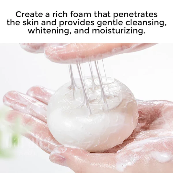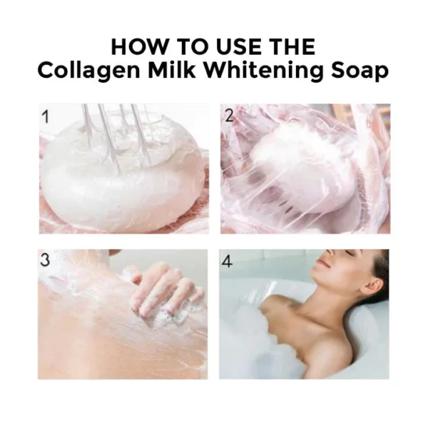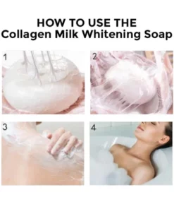 - Take the Collagen Milk Whitening Soap and lather it up on your hands or directly on your skin.
