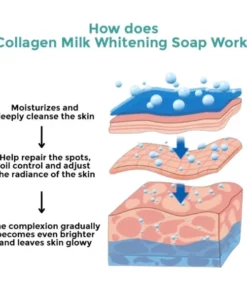 The Oveallgo™ Collagen Milk Brightening Soap works to help reduce skin pigmentation through its combination of key ingredients. The soap contains skin-whitening agents that target hyperpigmentation and help to fade dark spots or patches on the skin. These agents work by inhibiting melanin production, the pigment responsible for skin color. Additionally, the soap’s collagen and milk extract components contribute to improving overall skin health and promoting a more even complexion. By using the Oveallgo™ Collagen Milk Brightening Soap consistently, it aims to gradually reduce the appearance of skin pigmentation and promote a brighter, more uniform skin tone.