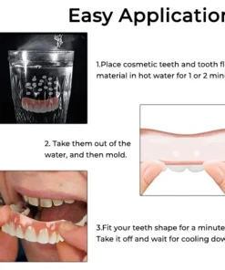 - Wear Dentures: Place the dentures in your mouth and firmly press down to ensure a secure fit. Enjoy immediate relief and all-day comfort!