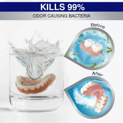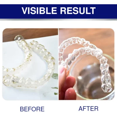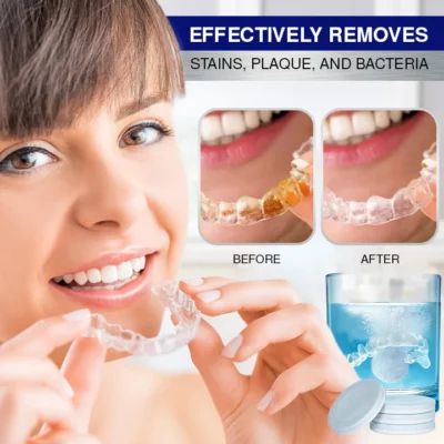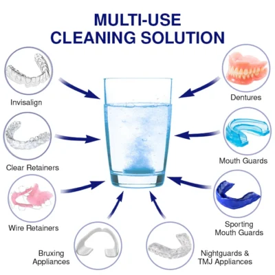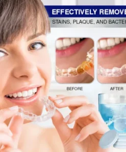 Removes plaque, stains, and bacteria from retainers, aligners, and dentures. The fizzing action helps dislodge debris and ensures thorough cleaning even in hard-to-reach areas.