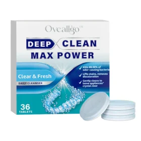 Oveallgo™ Deep Clean Max Power functions through a blend of active ingredients and effervescent action to deliver thorough cleaning and sanitization for various dental appliances such as retainers, aligners, and dentures.