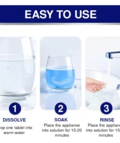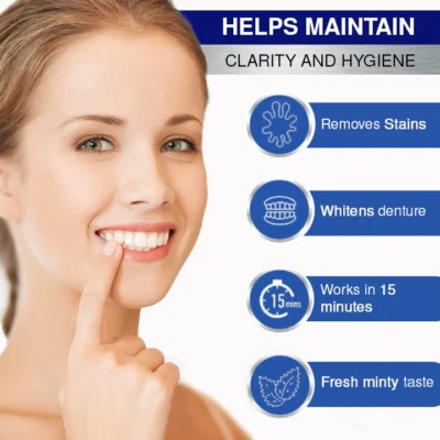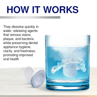 Designed to be gentle on dental appliance materials like acrylics, plastics, and metals, these tablets clean effectively without causing damage or discoloration. They are formulated with mild abrasives and non-abrasive cleaning agents to preserve the integrity and appearance of the appliance