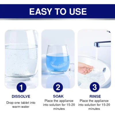 Simply dissolve a tablet in a container of warm water, immerse their dental accessory, and let it soak for a specified time (typically 15-30 minutes). After soaking, rinse completes the cleaning process, making it easy to incorporate into daily oral hygiene routines. This convenience encourages regular use, promoting better oral health and prolonging the lifespan of dental appliances.