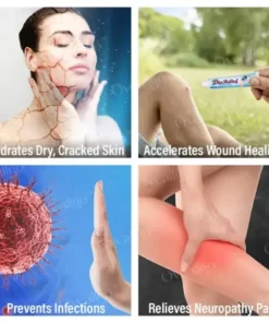 It hydrates and protects the skin while reducing discomfort from dryness and neuropathy. It also supports the body’s natural healing processes, particularly for diabetic wounds.