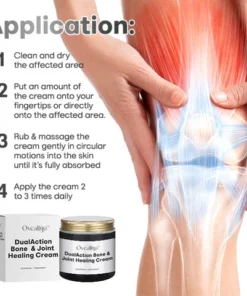 - Apply Generously: Massage a generous amount of Oveallgo™ DualAction Bone & Joint Healing Cream into the affected bones or joints.
