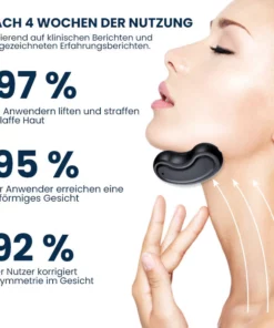 Sie können jetzt ganz bequem von zu Hause aus Ihre Wangenknochen modellieren, Ihre Kieferpartie anheben oder Ihr Gesicht insgesamt schlanker gestalten – ohne Termin beim Dermatologen! Dieses innovative Gerät wurde entwickelt, um schlaffe Kinnhaut zu verbessern und lose Haut zu straffen und Ihnen ein jüngeres, strahlenderes Aussehen zu verleihen.