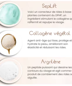 - SepiLift : un correcteur de rides d’origine végétale, contient du DPHP qui est un composant majeur du collagène, agit également comme un repulpeur pour donner un aspect plus ferme au visage.