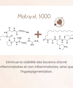 - Matriyxl 3000 : combine deux lipopeptides qui aident à améliorer la santé des cellules cutanées tout en augmentant la matrice extracellulaire de la peau + la production de protéines.