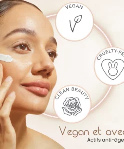 - Collagène Végétal : agent anti-âge, lissant, protecteur et hydratant. Améliore l’élasticité de la peau et réduit les rides visibles.