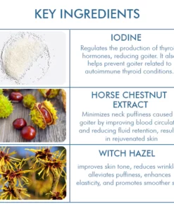 Witch hazel extract contains tannins, which have anti-inflammatory properties that can help reduce swelling and inflammation in the neck, providing relief from conditions such as goiter, swollen lymph nodes, or muscle strain. Due to its astringent properties, witch hazel extract can help tighten and tone the skin on the neck, reducing the appearance of sagging or loose skin. This can contribute to an overall more youthful appearance.