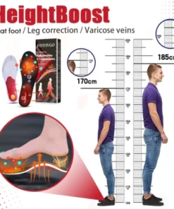 Oveallgo™ HeightBoost insoles promote bone growth, improve height, and optimize foot mechanics. Through far infrared therapy and enhanced blood circulation, the supply of nutrients and oxygen to the bones is supported. The insoles address foot problems, correct foot misalignments, and contribute to the overall health of the skeleton. Targeted pressure points on the sole of the foot improve circulation, alleviate venous issues, and promote detoxification. A holistic solution for optimized body growth and improved movement health.