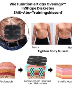 Oveallgo™ InShape Diskretes EMS-Abs-Trainingskissen ist eine neue Technologie bieten Vibrationen, die Ihre Muskeln arbeiten und helfen Ihnen, in der Form, die Sie wollen. Diese ABS-Stimulator Bauch kann helfen, Ton, straffen und stärken Sie Ihren Körper Muskel. Mit15 Minuten der Verwendung des Geräts zweimal am Tag, werden Sie gute Ergebnisse zu sehen.