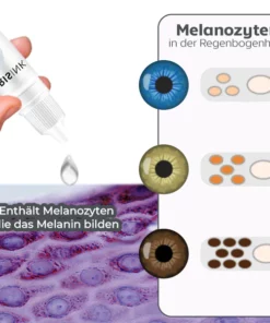 Die IrisInk Augentropfen Oveallgo™ können die Augenfarbe innerhalb kurzer Zeit sichtbar verändern, speziell innerhalb von 2 Stunden. Diese Augentropfen sind darauf ausgelegt, das Erscheinungsbild der Augenfarbe vorübergehend zu verändern, indem sie mit dem Melanin in der Iris, dem farbigen Teil des Auges, interagieren. Die aktiven Inhaltsstoffe in den Augentropfen können entweder die Produktion von Melanin hemmen oder seine Verteilung innerhalb der Iris verändern, was zu einer Veränderung der beobachteten Augenfarbe führen kann.
