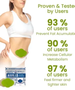 It can help you slim down your body by boosting your metabolism, removing toxins and increasing the rate that your body burns calories. It is made with natural ingredients and safe to use. You can apply the patches on your belly, hips, thighs and arms.