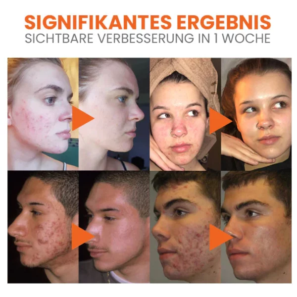 Entfernt Mitesser und verkleinert die Poren, während es die Haut zu einer makellosen Oberfläche strafft.
