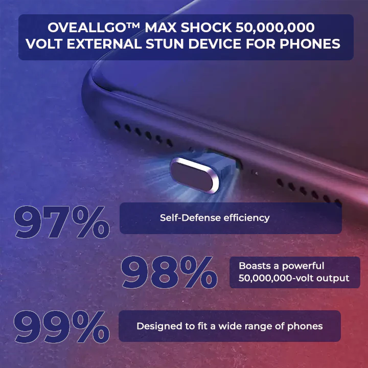 Experience unparalleled protection with the Oveallgo™ Max Shock 50,000,000 Volt External Stun Device for Phones, a revolutionary self-defense device designed to empower you in any situation. Combining cutting-edge technology with a discreet, everyday item look. It is an external plug that inserts into the bottom of the phone, specifically the charging area, and it releases electricity for defensive purposes, functioning similarly to a stun gun which takes personal safety to a whole new level!