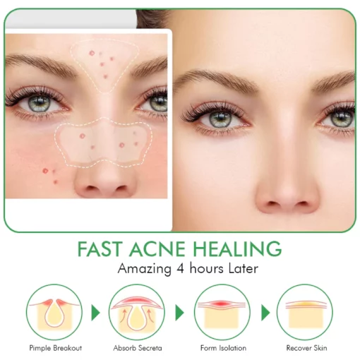 Oveallgo™ Overnight Hydrocolloid Acne Clear Patches effectively speed up acne healing by using hydrocolloid technology. They absorb excess pus, fluid, and bacteria, preventing infection and inflammation. The patches create a protective barrier, retaining absorbed fluids and maintaining a moist environment that reduces redness and promotes faster healing. This process helps minimize scarring and accelerates the recovery of acne breakouts.