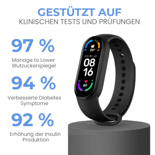 Kürzlich haben wir ein wirksames Instrument zur Regulierung des Blutzuckerspiegels entwickelt – das Oveallgo™ PRIXO Zucker Kontrolle Hochfrequenz-Fitband. Wissenschaftliche Beweise zeigen, dass Hochfrequenzvibrationen der Schlüsselfaktor für die Regulierung des Blutzuckerspiegels sind, da sie den menschlichen Blutfluss und den Stoffwechsel erheblich beeinflussen. Das Fitband sendet Ultraschallwellen an den Körper und fördert eine gute Durchblutung. Diese wird dann durch Schweiß und Lymphdrainage freigesetzt, was zur Senkung des Blutzuckerspiegels beiträgt. Legen Sie einfach die Handschlaufe an und es erledigt die ganze Arbeit für Sie. Die Anwendung ist für jedermann absolut sicher. Ein perfektes Werkzeug zur Blutzuckerkontrolle.