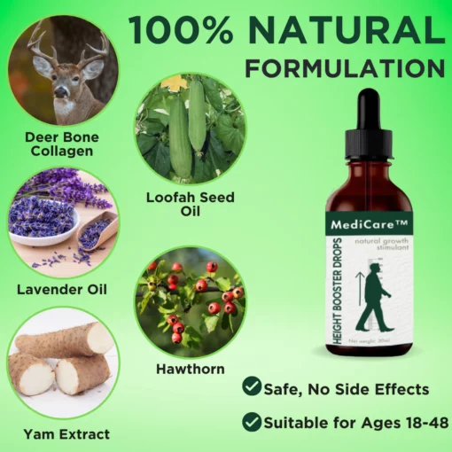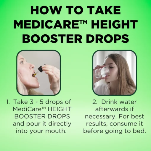 - The MediCare™ Height Booster Drops stimulates bone formation once more, with a greater effect.