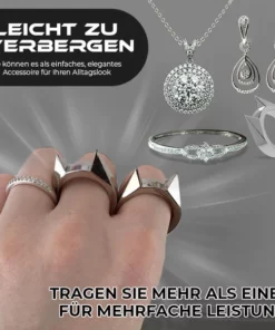 Leicht zu verbergen – Er ähnelt einem normalen Modering und bietet nahtlose Versteckbarkeit, ohne Kompromisse bei der Festigkeit einzugehen. Trotz seiner kompakten Größe hat er es in sich und liefert mehr Leistung als herkömmliche Elektroschocker. Sein schlankes Design sorgt dafür, dass er an Ihren Fingern bleibt. Sie können sogar mehr als einen Ring tragen, um seine Kraft zu vervielfachen und immer einsatzbereit zu sein.