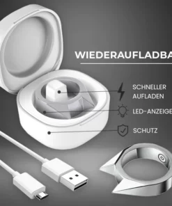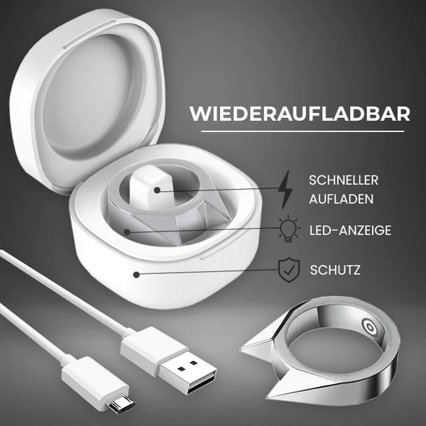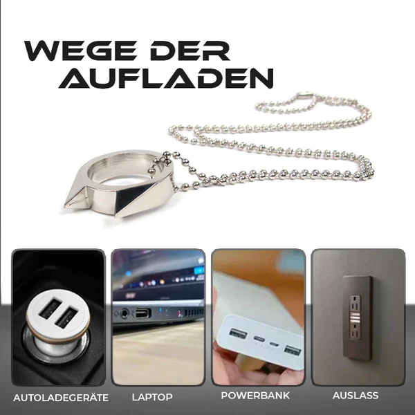Ein unverzichtbares Elektrowerkzeug zur Selbstverteidigung – dieser Ring hat eine stärkere Schlagkraft als die meisten größeren Elektroschocker. Es kann bis zu 50.000.000 Volt Strom freisetzen. Das Berühren eines Angreifers für weniger als 1 Sekunde führt zu Muskelkontraktionen und hat eine abstoßende Wirkung. Für mehr Sicherheit können Sie mehrere dieser Ringe tragen. Die perfekte Möglichkeit, Ihrem Leben eine zusätzliche Schutzschicht hinzuzufügen, ohne auf Stil zu verzichten.