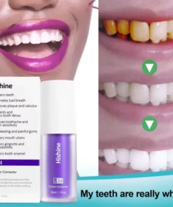 v34: It uses color correction techniques, not chemical whitening treatments. Purple is the exact opposite of the yellow color on the color wheel and is therefore a complementary color.Applying purple to your teeth counteracts the yellow undertones, hides stains and improves shine, giving you an instant, noticeably brighter white color.
