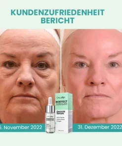 “Nach 6 Wochen waren die Falten auf meiner Stirn, die schlaffe Haut an meinem Hals, die Krähenfüße – sogar die Altersflecken auf meinem Gesicht vollständig verschwunden. Ich habe Dutzende von Produkten und Behandlungen ausprobiert, aber keines funktionierte besser als DIES!