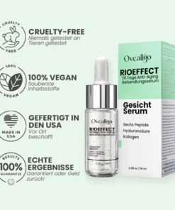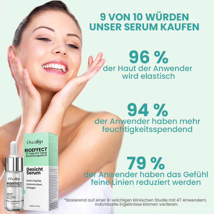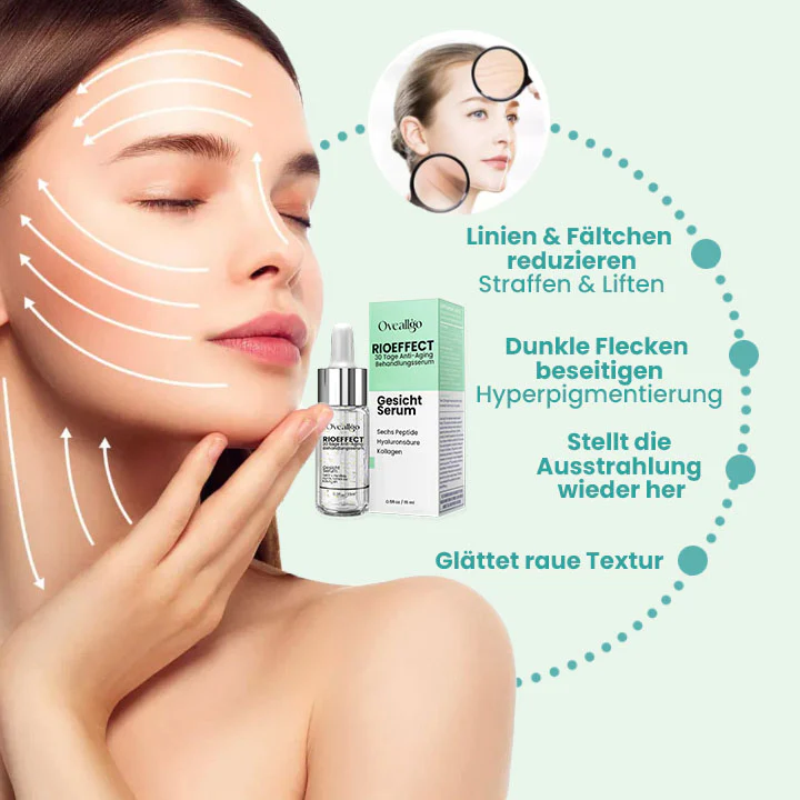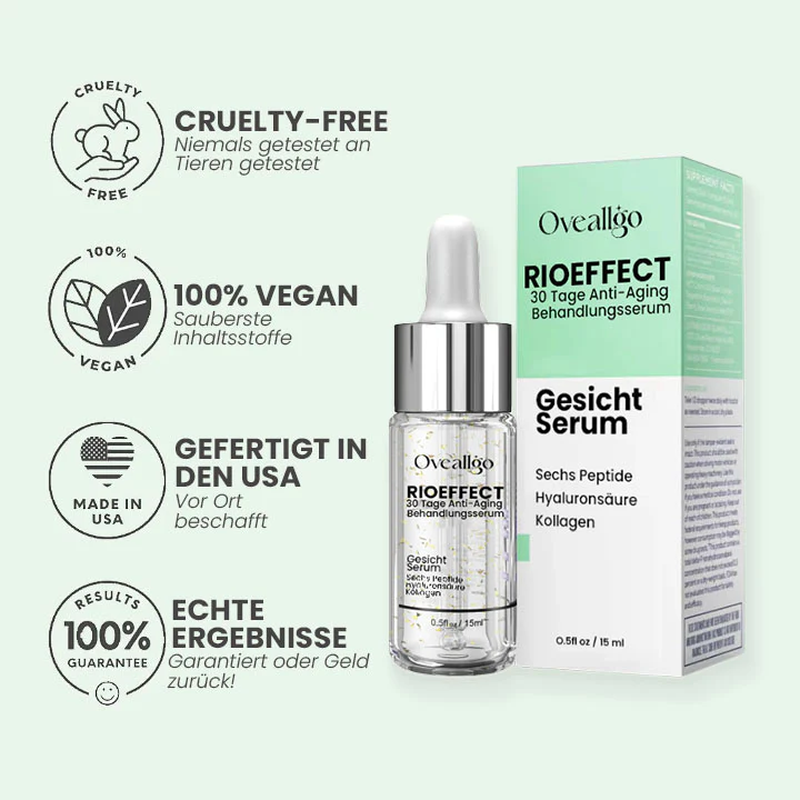 Das Oveallgo™ RIOEFFECT 30-Tage Anti-Aging-Behandlungsserum ist formuliert, um Falten und Flecken auf Ihrem Gesicht und Hals zu entfernen.