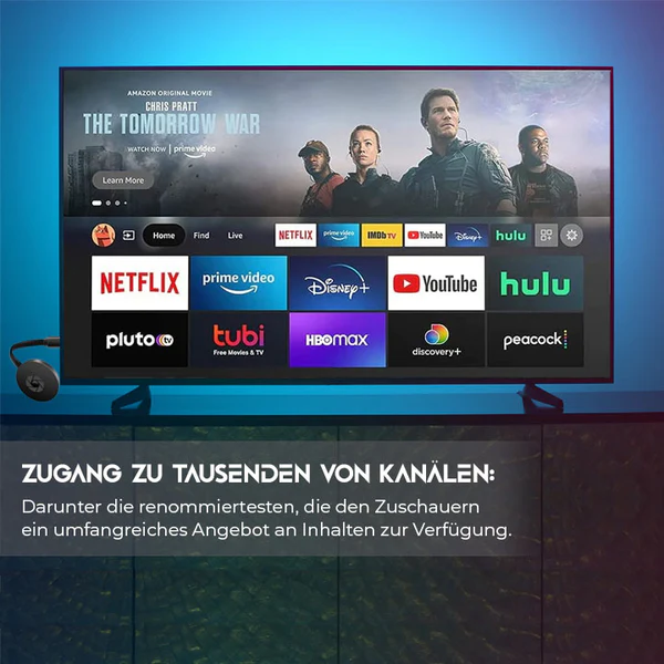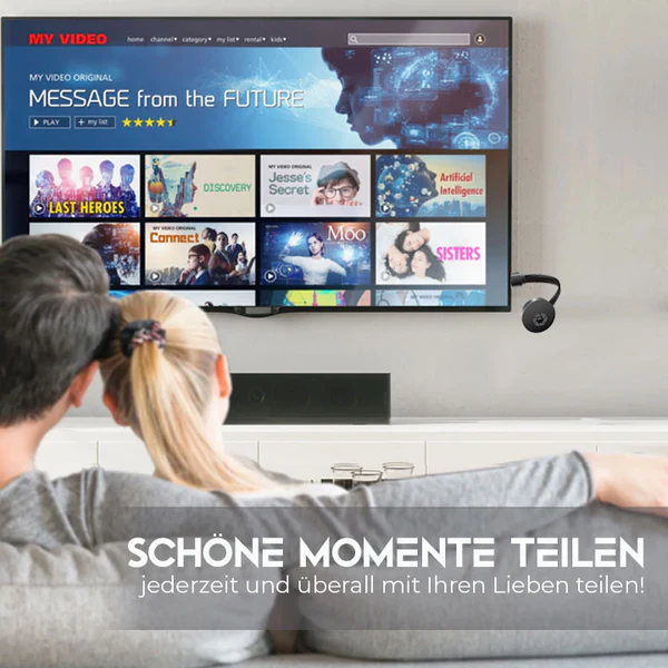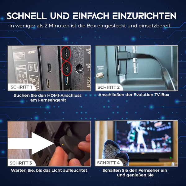 Ganz einfach, indem Sie die Box in den HDMI-Anschluss Ihres Fernsehers stecken, erhalten Sie sofortigen Zugang zu den Fernsehinhalten, von denen Sie immer geträumt haben.
