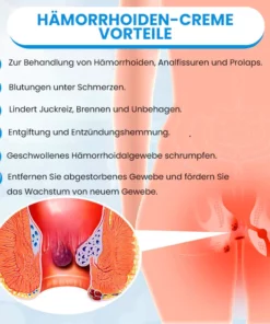 Es lindert die Symptome von Hämorrhoiden auf sichere, natürliche und wirksame Weise. Es wirkt gegen Brennen, Juckreiz, Schwellungen und schrumpft das Hämorrhoidengewebe.