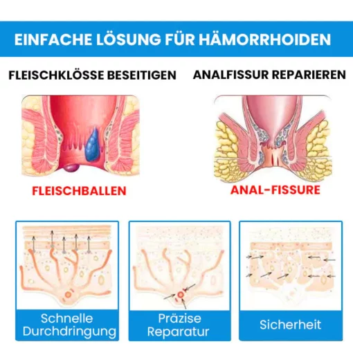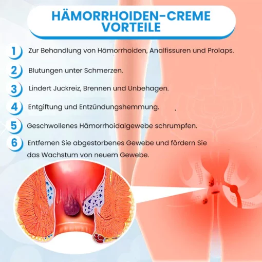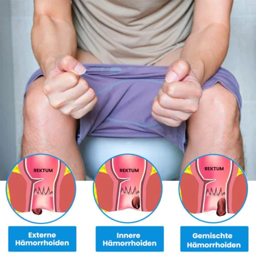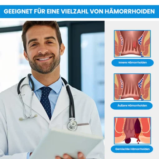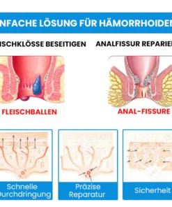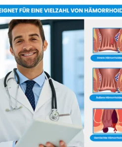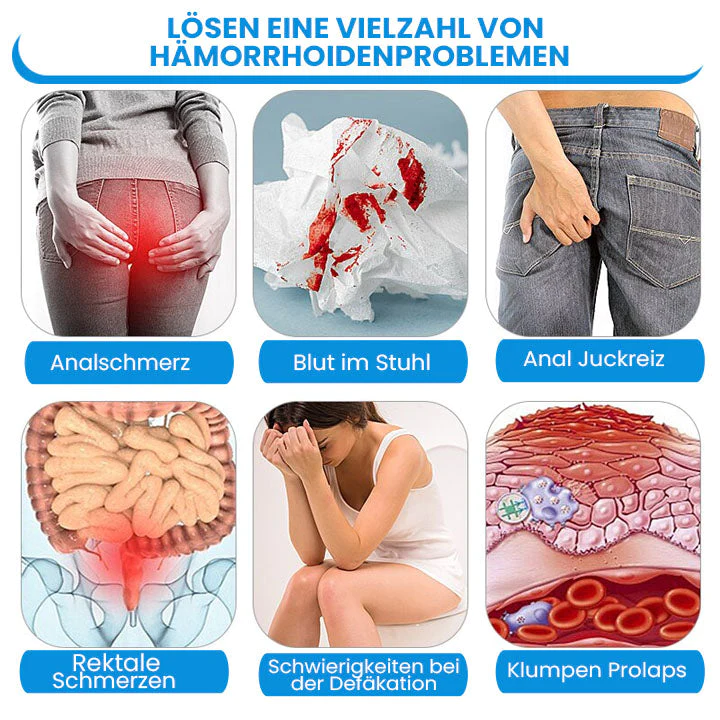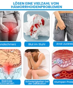 - Die Ergebnisse der klinischen Studien und Fragebögen zeigen, dass dieses Produkt auch sehr wirksam bei der Behandlung von Symptomen wie analem Juckreiz, analen Schwellungen und Verstopfung ist.
