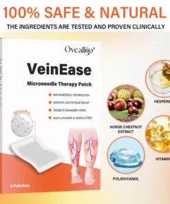 Oveallgo® VeinEase Microneedle Therapy Patch is a clinically proven, non-invasive patch designed to treat varicose veins, reduce swelling, and improve leg circulation—without surgery, injections, or downtime. Powered by advanced microneedle technology and enriched with medical-grade ingredients like Polidocanol, Horse Chestnut Extract, and Vitamin K, it provides visible results in just days.