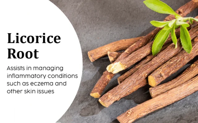 Licorice powder, with its antimicrobial properties, is beneficial for skin care. It aids in treating inflammatory conditions like eczema and various skin issues. Its healing abilities help eliminate skin tags, warts, moles, and blemishes topically.