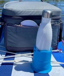 - 【Easy to Use】The proper elasticity of this cup sleeve makes it very easy to put on and take off. Simply place the bottle bottom cap on the paddle board and gently press down on the cup to place it on the bottom. It’s not sticky when you take it off like some silicone cup sleeves.