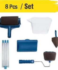 8 Packs: 1 x roller paint pro;1 x flocked edger;1 x corner pad;1 x resting tray;1 x easy-pour-jug;3 x extension handle