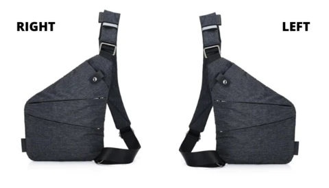 Choose The Right Shoulder if you wish to have the strap on your right shoulder and the bag on your left side (Recommended for Right-handers)