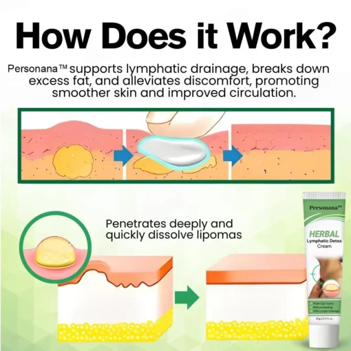 Personana™ Herbal Lymphatic Detox Cream is formulated with a unique transdermal delivery system that allows its powerful herbal ingredients to penetrate deep into the skin, targeting the lymphatic system directly. This ensures the active compounds are efficiently absorbed into the areas that need support, helping to restore the natural balance of your body’s detoxification network. By stimulating lymphatic drainage, Personana™ helps eliminate toxins, excess fluids, and waste buildup, naturally relieving swelling, fatigue, and discomfort. Consistent use enhances your body’s detoxification process and supports overall lymphatic health from the inside out.
