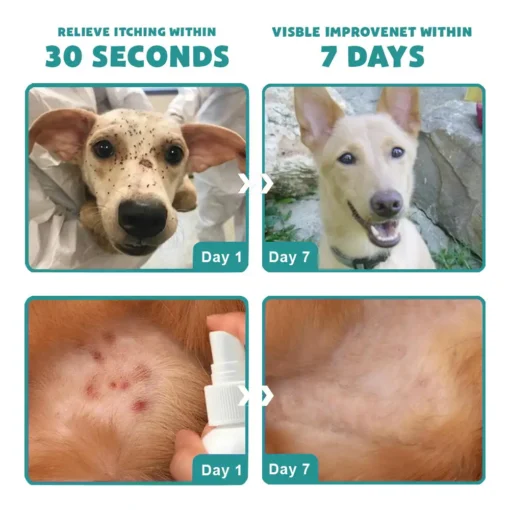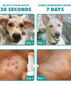 For pets with long fur, part the hair at the affected area to ensure the spray reaches the skin. Apply the spray directly to the area and allow it to air dry. Repeat this process 3-4 times daily for the best results.