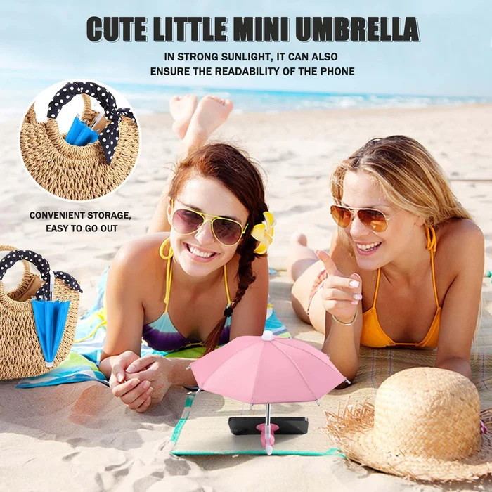 The mini phone umbrella can be used as a mobile phone holder at home or beach, which is light-proof, anti-reflective and anti-peeping and be the perfect canopy umbrella for mobile phone.