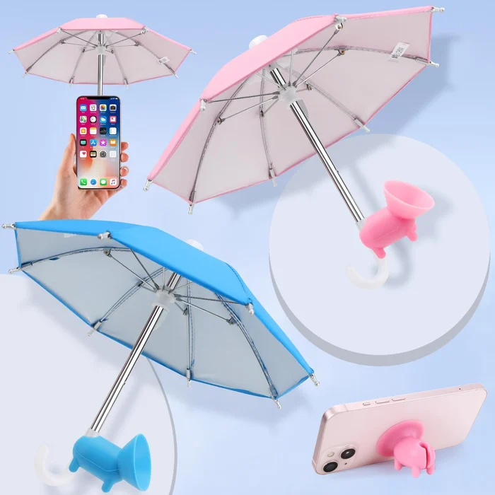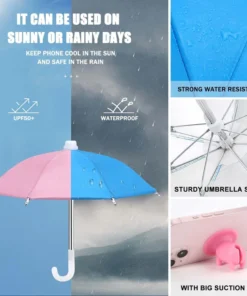 【Premium Material】 Phone Umbrella made of environmentally friendly silicone and plastic, sturdy and premium, with a non-slip pad at the bottom to keep the phone holder stable.