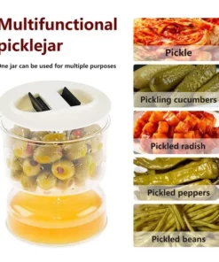 The pickle jar design to separate liquid from the pickles when you flip it, After you finish eating, flipping back the jar and the pickles soaking in brine again to maintain their freshness and savor.