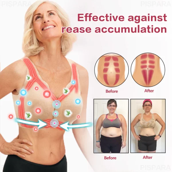 Our PISPARA™ Ion Lifting & Lymphvity Detoxification Bra can help you achieve your weight loss goals, even if you don’t exercise regularly and have a balanced diet. The 80% far-infrared therapy can assist you in reaching your ideal weight. This bra helps increase metabolism, stimulates the lymphatic system, detoxifies the body, and eliminates accumulated cellulite and edema. The fat-burning fabric containing electric stone efficiently metabolizes fat, allowing you to burn fat while sleeping, working, or exercising, shaping your perfect body curves overnight!
