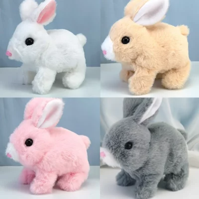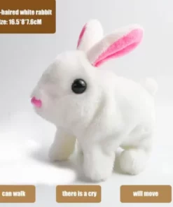 ELECTRIC PLUSH TOYS: Simulated animal design, vivid facial expressions, bright colors, perfect details, can make sounds, can walk, rabbit ears can sway back and forth, very cute and interesting. The plush toy needs 2 AA batteries for power supply (batteries not included), you can put the batteries directly into the battery box (note: the voltage of the AA batteries used should not be too high, otherwise the motor will easily burn out and cannot be moved).