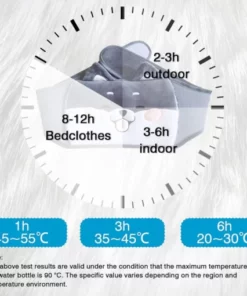 - DURABLE AND SAFE – Hot water bottle is made of rubber for maximum safety and heat transfer perfectly, keeping the water warmer for longer. To provide more safety, the temperature of the hot water should not exceed 80 degrees Celsius.