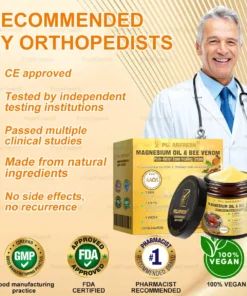 “As an orthopedic surgeon, I endorse PolarFresh® Magnesium Oil & Bee Venom Pain-Relief Bone Healing Cream for individuals suffering from joint and bone conditions such as osteoarthritis, rheumatoid arthritis, and other inflammatory disorders. This spary contains active ingredients like bee venom filtrate, glucosamine, and chondroitin, which work to alleviate inflammation, nourish joints, and enhance mobility. It also aids in rebuilding and restoring cartilage and bone tissue, alleviating pain and stiffness while eliminating harmful crystals that can accumulate in joints, thereby improving overall joint function.”