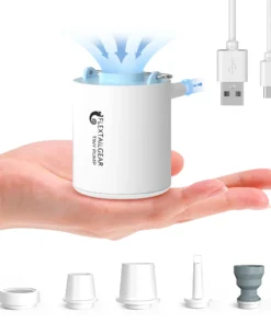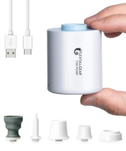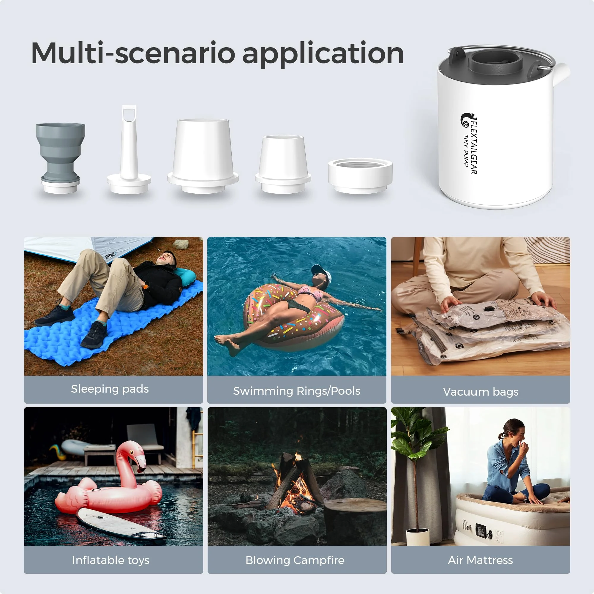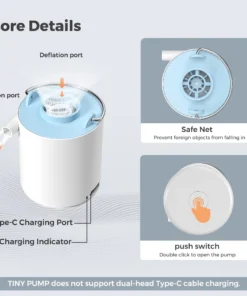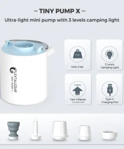 【ULTRA-MINI SIZE & PORTABLE】– TINY PUMP X weights: 3.1 oz; Size: 1.7*1.7*2 inch; the portable air pump is mini as an egg and light-weighted. Portable to carry, this air mattress pump can be attached to the backpack or put in your pocket. One-button operation, widely used for outdoor camping, hiking, beach, and indoor storage bags. (NOTE: Double click to start the air pump and long press to open the led light.)
