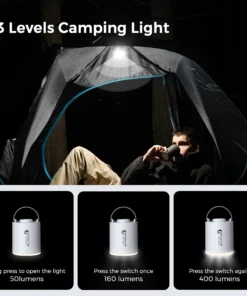 【PRACTICAL CAMPING LIGHT】– The bottom camping light emits 4500k white light(8 LED beads) for wide range lightning and high brightness. 3-level brightness adjustment: High(400 lumen)/Medium(160 Lumen)/Low(40 Lumen) to tackle with different illumination needs. Fit for camping tent, night walking, power outage, etc.